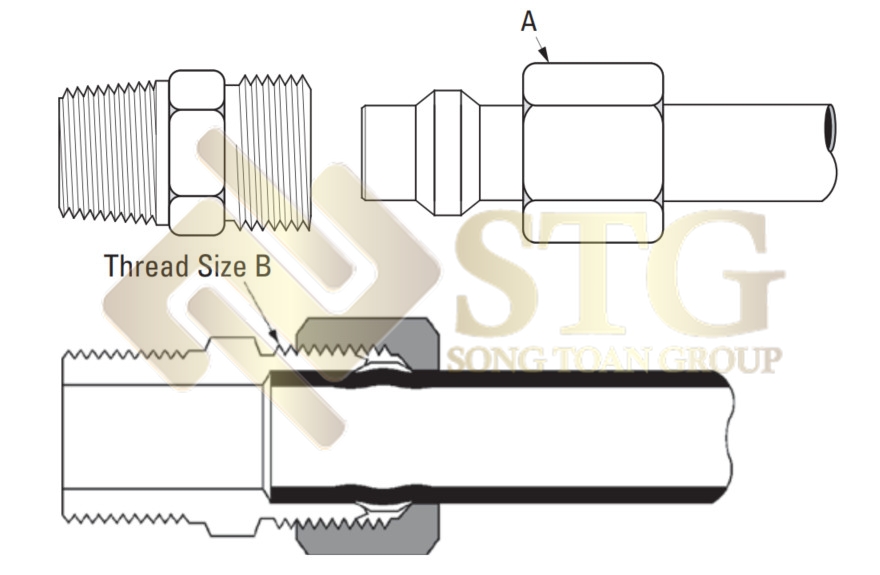 - Kết nối ống chèn hạt bắp (compression) có thiết kế chặn chặt với đầu ống bằng cách nén và kẹp chặt đầu ống.