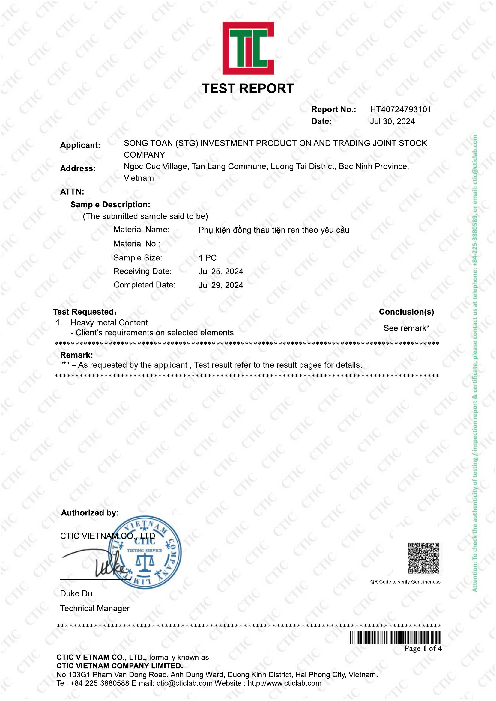 Công Ty Cổ Phần Đầu Tư Sản Xuất và Thương Mại (STG) Song Toàn tự hào là đơn vị hàng đầu trong lĩnh vực phân tích và sản xuất hợp kim đồng thau tại Việt Nam. Với đội ngũ chuyên gia giàu kinh nghiệm và công nghệ hiện đại, chúng tôi cam kết mang đến cho khách hàng những sản phẩm và dịch vụ chất lượng cao nhất.